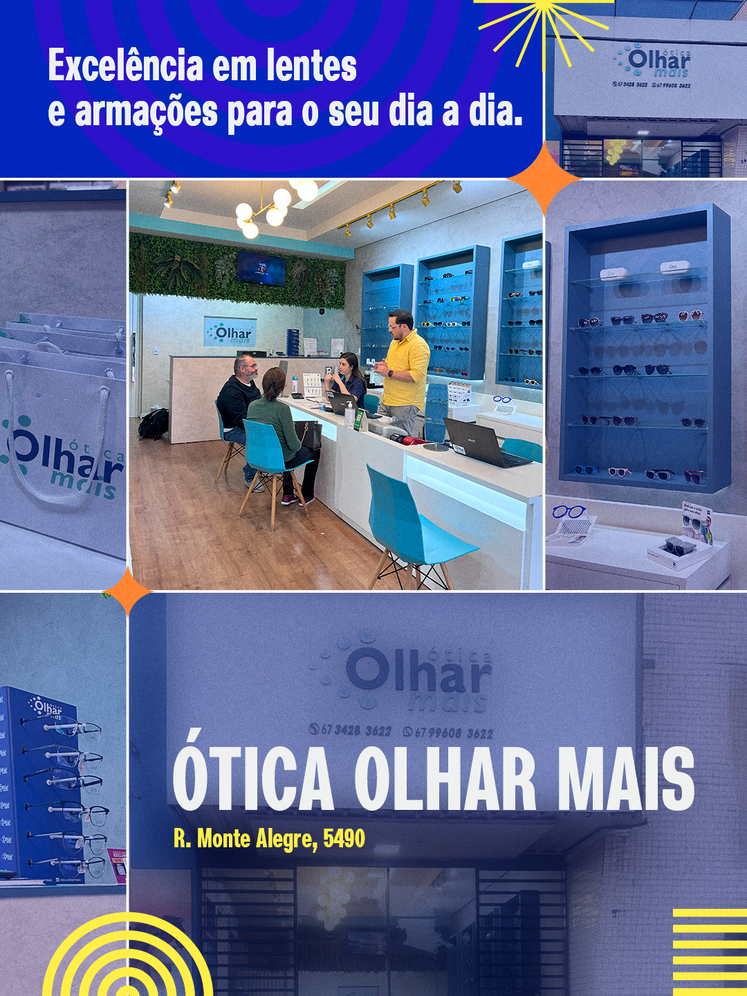 O cliente não recebe só um par de óculos: recebe acompanhamento, garantia, manutenção gratuita e uma consultoria personalizada que ajuda a escolher a armação e a lente ideais para o seu estilo de vida.